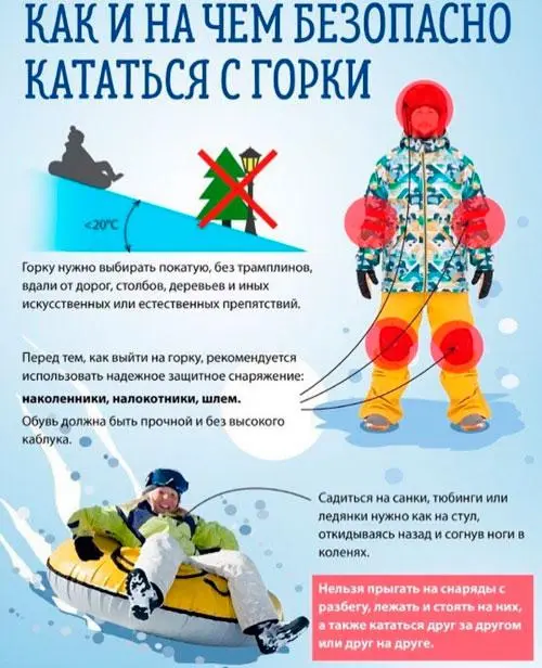 В связи с ростом травм при катании на горках, особенно на тюбингах, МЧС и медики напоминают о правилах безопасности: выбирайте горки без препятствий и дорог, съезжайте по одному, отходите в сторону, не перебегайте спуск, съезжайте лицом вперед, и используйте только подходящий инвентарь, не превышая вес.
