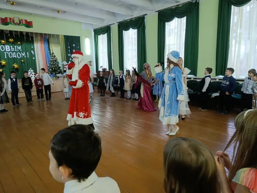 Ровно в назначенное время фойе наполнилось нарядными учащимися. В детских глазах читался неподдельный восторг и волнение. Под звуки волшебной мелодии в актовом зале школы началось представление. Учащиеся 10-11 классов показали замечательную новогоднюю сказку, в котором добро, как и полагается, победило зло, а хитрые проделки Снежной Королевы были с лёгкостью разгаданы. Не обошлось и без весёлых танцев, хороводов с Дедом Морозом и Снегурочкой, стихотворений возле ёлки и подарков.