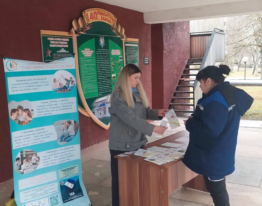 16 апреля специалисты учреждения приняли участие в пилотном проекте «Консультационный пункт «Счастливое родительство», целью которого является повышение педагогической и психологической культуры родительской общественности. Консультационный пункт работал на базе ОАО «140 ремонтный завод». В рамках работы пункта родители смогли получить консультации от квалифицированных специалистов – психологов, педагогов, которые помогали разобраться в сложных ситуациях и предлагали эффективные методы воспитания. Родителям дана информация о возможностях получения консультационной помощи соответствующих специалистов в государственных организациях здравоохранения, образования, социальных центрах, интернет-ресурсах, вручены памятки, буклеты по гармонизации детско-родительских отношений, особенностях возраста несовершеннолетних, профилактике конфликтных ситуаций, формированию здорового образа жизни и другие.