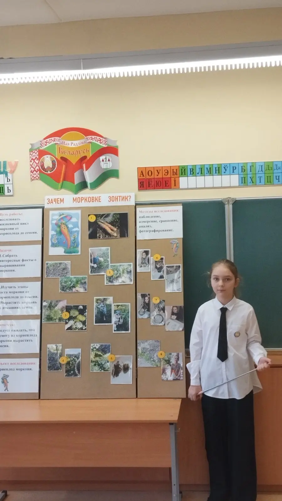 Тема её исследования - «Зачем морковке зонтик?» - показала, как внимательно можно наблюдать за окружающим миром, ставить интересные вопросы и находить на них научные ответы. Эта победа – результат не только упорного труда самой ученицы, но и умелого, мудрого руководства её классного руководителя Никоноровой Светланы Алексеевны.