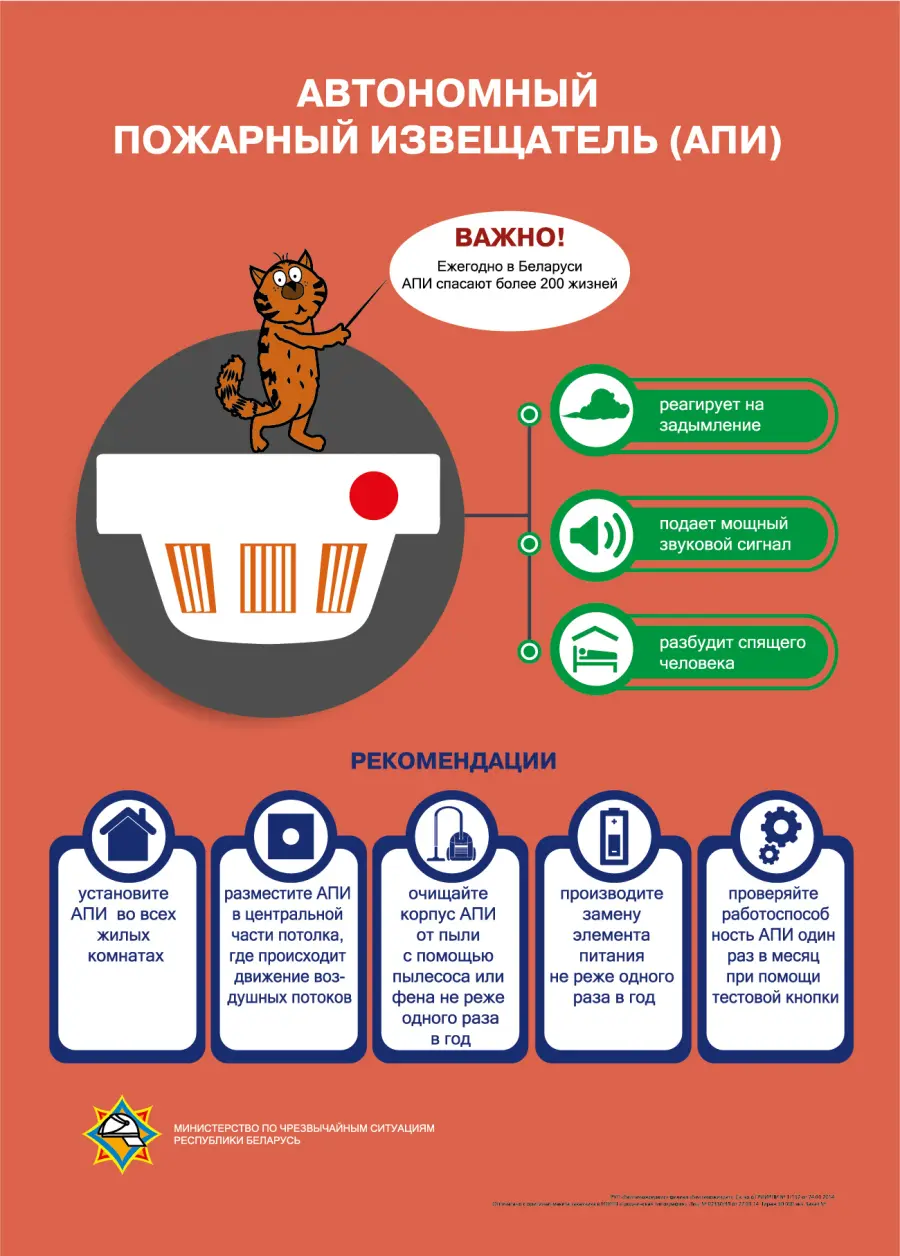 Сотрудники МЧС во время профилактических рейдов проверяют наличие и исправность АПИ в домах, особенно в домах многодетных семей и одиноких пожилых людей. В Республике Беларусь действуют программы, по которым АПИ бесплатно устанавливаются социально уязвимым категориям граждан (инвалиды, многодетные семьи, одинокие пенсионеры).