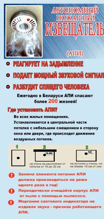 Автономный пожарный извещатель (АПИ) это не просто рекомендация, а обязательный и самый эффективный элемент безопасности в Вашем доме. Этот недорогой прибор является Вашим личным сторожем, который не спит ночью и в критическую секунду подаст сигнал, который спсет жизнь Вам и Вашим близким.