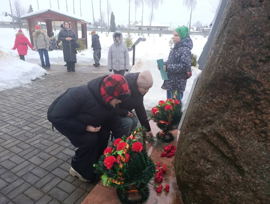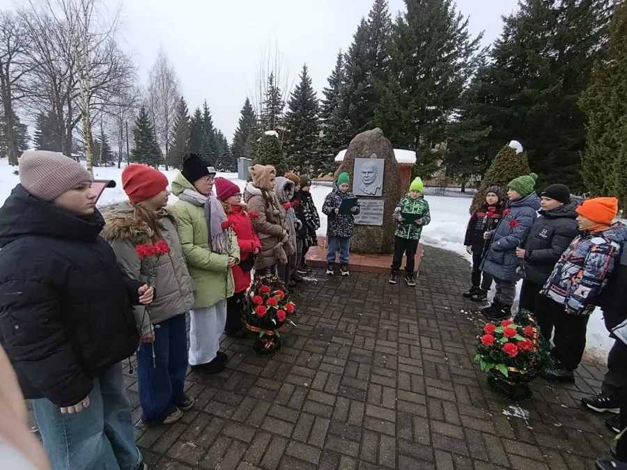 14 февраля, в рамках декады гражданско-патриотических дел «Афганістан у лёсах нашых землякоў», учащиеся нашей школы приняли участие в возложении цветов к памятному знаку полковника медицинской службы Борисюка И.В. Учащиеся еще раз вспомнили о подвиге военного хирурга, полковника медицинской службы, который не раз в условиях боевых действий оказывал экстренную помощь тяжело раненым солдатам и офицерам во время афганской войны.